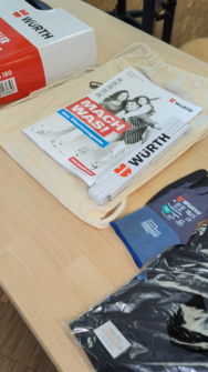 Ein erstes Highlight war die Ankunft der Würth-Pakete mit Projekt-T-Shirts, Werkzeug und Materialien. Beim gemeinsamen „Unboxing“ wurde die Vorfreude auf die kommenden Arbeitsschritte deutlich spürbar. Würth unterstützt das Projekt zusätzlich mit 1.000 Euro Fördergeld. Weitere 1.000 Euro steuern der Förderverein und das Bauamt bei.