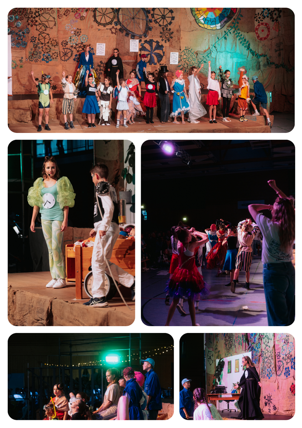 Mit zwei ausverkauften Aufführungen und begeisterten Standing Ovations wurde „Ausgetickt – Die Stunde der Uhren“ zu einem unvergesslichen Erlebnis für alle Beteiligten und das Publikum. Wir sind unglaublich stolz auf die Schülerinnen und Schüler, die in einem so großen Projekt über sich hinausgewachsen sind und das Publikum mit ihrer Leidenschaft, ihrem Mut und ihrem Talent beeindruckt haben.