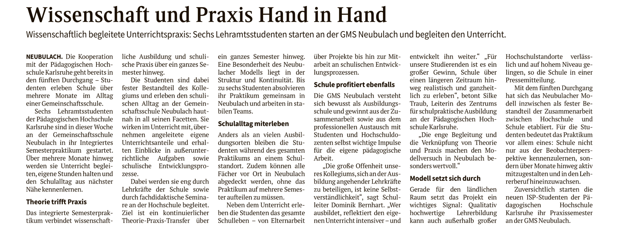 - Neue Wege in der Lehrerbildung - Integriertes Semesterpraktikum: ➔ Hier geht es zum Artikel im Schwarzwälder Boten vom 26.10.2023