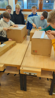 Ein erstes Highlight war die Ankunft der Würth-Pakete mit Projekt-T-Shirts, Werkzeug und Materialien. Beim gemeinsamen „Unboxing“ wurde die Vorfreude auf die kommenden Arbeitsschritte deutlich spürbar. Würth unterstützt das Projekt zusätzlich mit 1.000 Euro Fördergeld. Weitere 1.000 Euro steuern der Förderverein und das Bauamt bei.