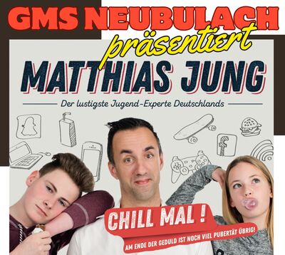 Matthias Jung ist seit 2005 eine feste Größe auf den Bühnen Deutschlands. Er hat regelmäßig TV-Auftritte, er hält Vorträge und gibt Coachings und Seminare. Er ist Leiter der größten Pubertäts- Facebook-Gruppe "Keep Cool Mama", in der 15.000 Mütter im ständigen Dialog die Probleme der Pubertät analysieren und er produzierte den erfolgreichen Podcast "Chill mal - Der Pubertäts AllTalk".