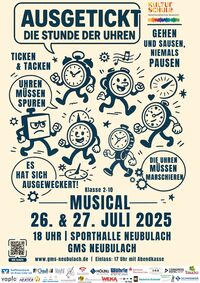 Das Jahr 2025 wird als ein ganz besonderes Jahr in der Geschichte der GMS Neubulach eingehen. Mit der Aufführung des Musicals „Ausgetickt – Die Stunde der Uhren“ haben wir nicht nur einen bedeutenden Beitrag zum 750-jährigen Stadtjubiläum von Neubulach geleistet, sondern auch einen sehenswerten Beitrag in das Landesprogramm „Kulturschule Baden-Württemberg“ eingebracht.