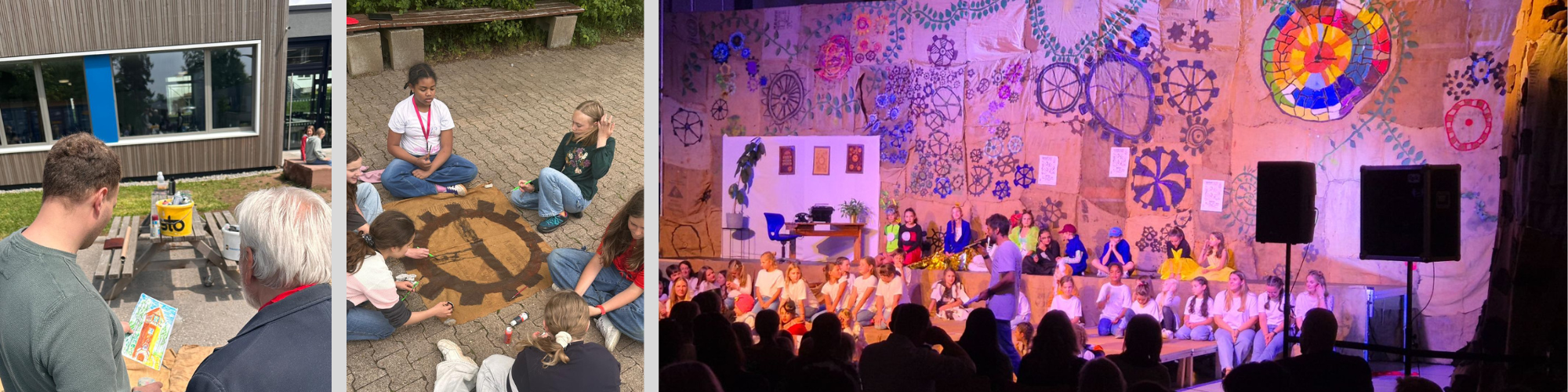 Aber es gibt auch, das gesamte GMS-Kollegium in den Dank einzubeziehen: Die vielen Stunden an Vorbereitungen und die Flexibilität, mit der alle Kolleginnen und Kollegen die Proben und Aufführungen unterstützten, sind alles andere als selbstverständlich. Es galt an so vielen Stellen Rücksicht auf das Projekt zu nehmen, z.B. wenn wieder Einzel- oder Kleingruppenproben anstanden, die heiße Projektphase beim Bühnenbild und dem Aufbau in der Halle anstand, wenn Kolleg/innen vertreten werden mussten, damit sie beim Projekt mitarbeiten konnten oder wenn bei der Generalprobe manche Klassen fast vollständig nicht im Unterricht sein konnten. Es war großartig zu sehen, wie das gesamte Kollegium hinter dem Projekt stand und mit Begeisterung und Tatkraft die Schülerinnen und Schüler unterstützte. Dies war ein echtes Teamprojekt, das nur durch die Zusammenarbeit und das Engagement aller Beteiligten möglich war.