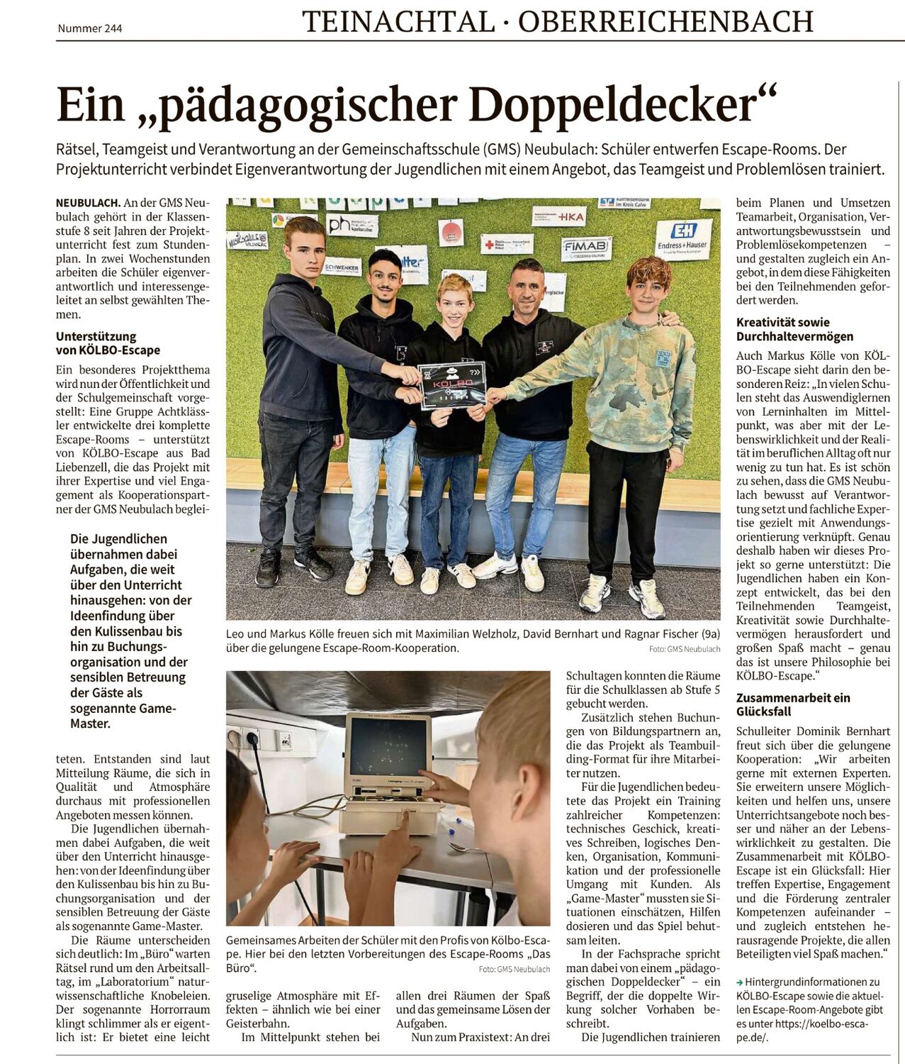 - Projektunterricht "Escape Room" mit Firma Kölbo, Bad Liebenzell ➔ Hier geht´s zum Bericht im Schwabo vom 21.10.2025